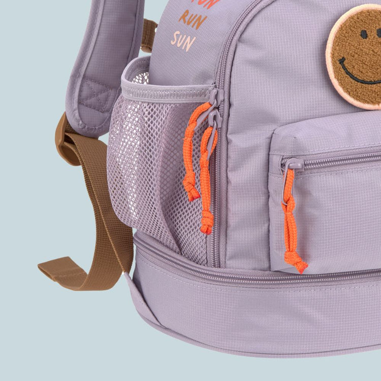 Lassigのミニバッグパックは、子どもの小さな手でもしっかり握れる持ち手付きのファスナーを採用。